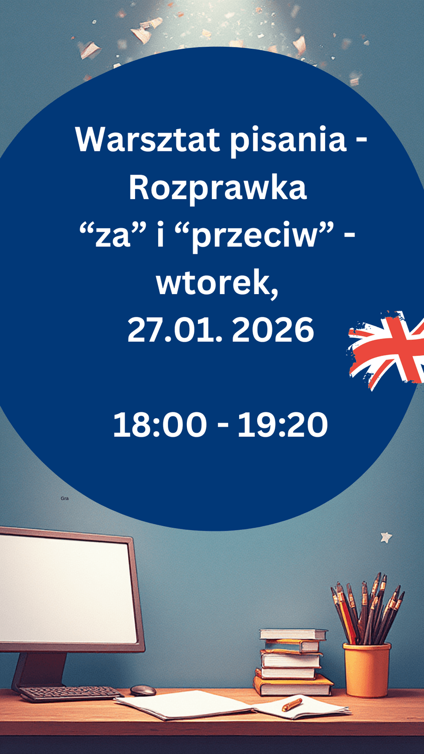Warsztat online (na żywo) - pisanie rozprawki "za" i "przeciw"na maturę z języka angielskiego